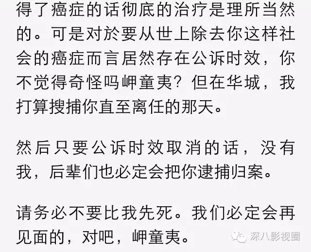 深八君认为,不应用时代的局限去苛责警方,毕竟,由于他们的契而不舍,正义虽然迟到终于没有缺席。要知道同样在80年代,韩国也发生过一起红衣女连环奸杀案,他们的警察却恐怕要在遗憾中度过余生了。