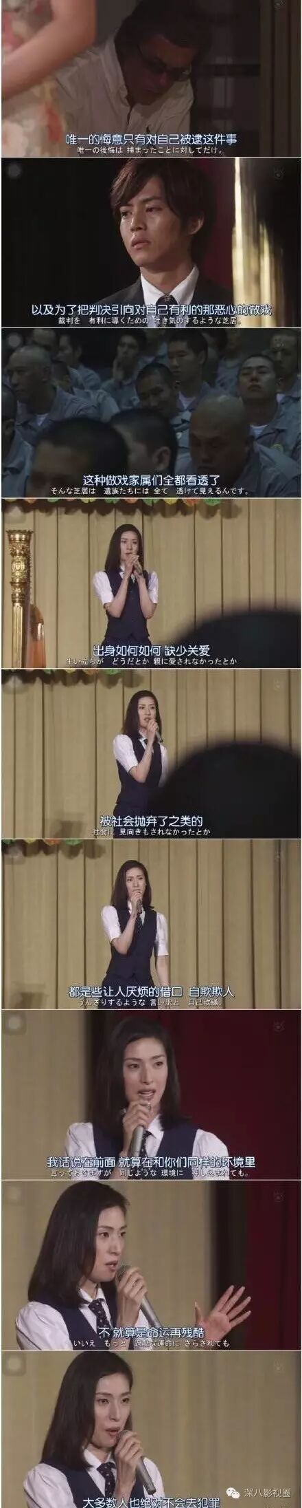 再贴一遍天海女王这段台词:出身如何缺少关爱,被社会抛弃之类,都是些让人厌烦的借口。就算在和你们同样的环境里,就算命运再残酷,大多数人也不会去犯罪。为了把判决引向有利于自己方向的恶心把戏,家属们早就看透了。