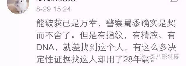 也有人感叹,当年这起连环案件留下了指纹精液和DNA等诸多物证,但找到这个人仍然要用28年的漫长时光。还有人称当年警察也有所失误,否则案件可以更早告破。