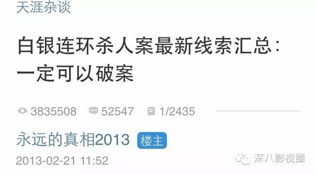 天涯曾发出“白银连环杀人案最新线索汇总”的帖子,义愤群众纷纷贡献线索和分析思路,搭起了一座2000多页的高楼