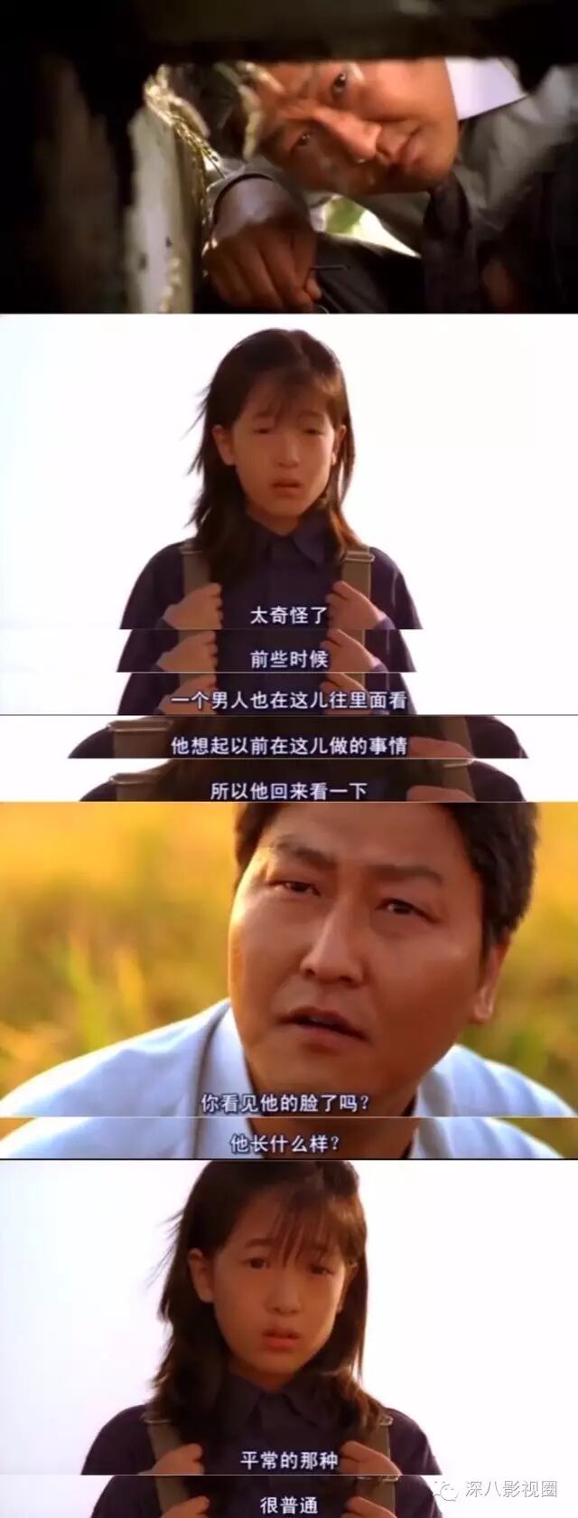 影片以宋康昊的这个凝视结束。深八君觉得他的眼神仿佛在说:凶手就是普普通通的人?你是不是就在观众之中观看这部电影,观看自己的杀人回忆?我们一定会抓住你。