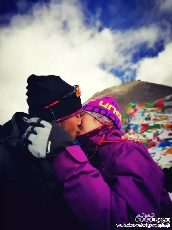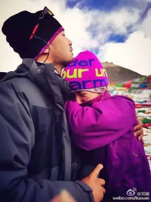 在海拔5600米的岗仁波齐山,喜极而泣的两人抱在一起,陈亦飞一脸享受,这个女人被你承包了hhhh。