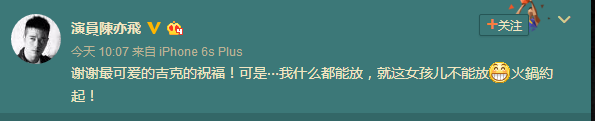 陈亦飞马上回复到,可是我什么都能放,就这女孩的手不能放。