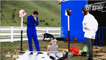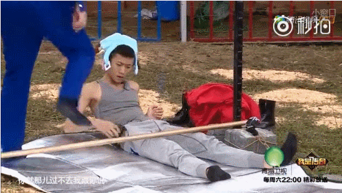 张一山也是心领神会,但还是上阵尝试了一下。一直在地上蹭蹭蹭,想蹭过去。