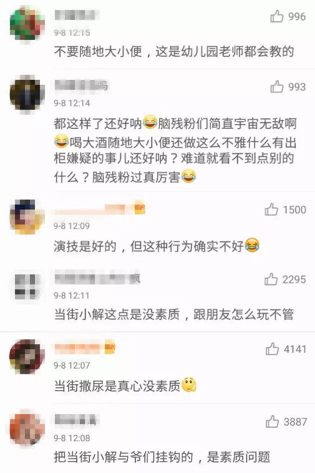 有人认为在大街上小便,无论如何都是一种缺乏公共道德素质的表现,身为公众人物的张一山这么做更是影响不好。