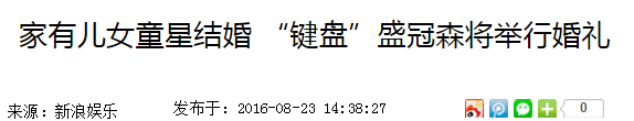 今年才23岁的盛冠森上个月被爆已经领证结婚,还会举行婚礼。