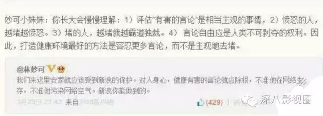 确实,网上有些针对林妙可的情色YY留言和PS图片简直可怕,一个小姑娘不该承受这些。但深八君同样不明白的是,为什么家长要让林妙可过早地开微博。如果说“爱我你就抱抱我”这样的歌词不应该想多