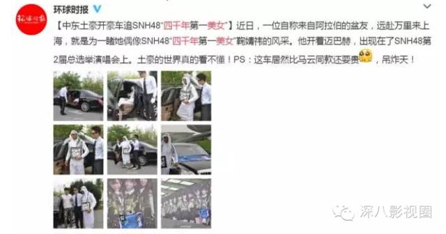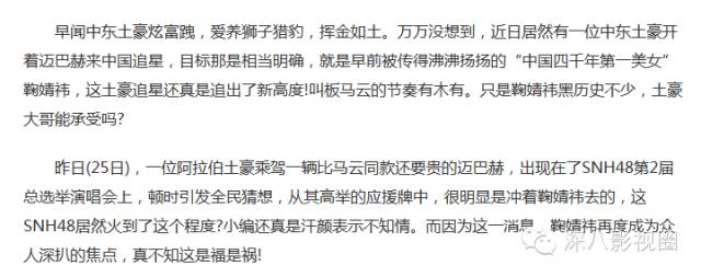 还有新闻说有中东土豪不远万里来上海追鞠婧祎,开的车比马云同款还贵…..