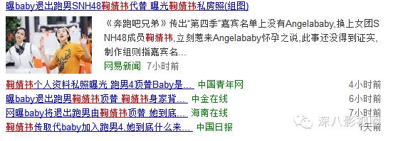第四季跑男开播之前,一条baby将要退出跑男的消息流传开来,然后网上爆出了一张所谓的跑男第四季大名单,baby的位置将由SNH48的成员鞠靖祎替代。