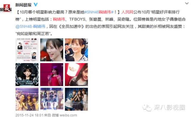 在跑男这则乌龙消息之前,鞠婧祎也是上过几次热搜的,比如,人民网发的明星好评榜鞠婧祎力压tfboys夺冠,