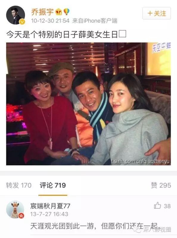 几年前两人去朋友生日派对时的合影上,乔振宇的手像是搂着王丽坤。