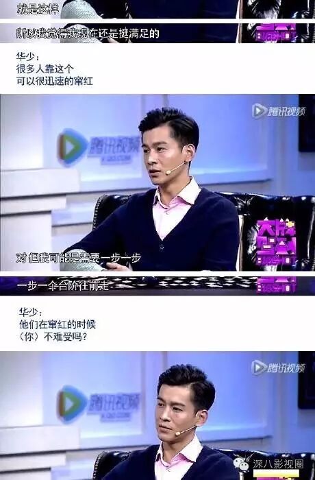 上“大牌驾到”时,华少如此说乔振宇:除了演戏之外没有任何话题性新闻,缺少关注度。乔振宇答:我可能是需要一步一步,一步一个台阶往前走。
