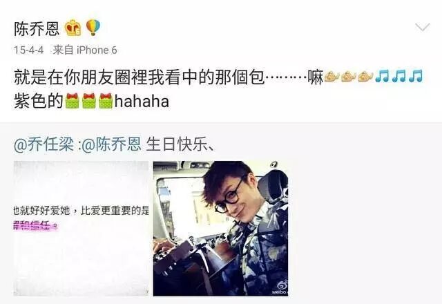 去年陈乔恩生日,细心的乔任梁送了她看中的包包。