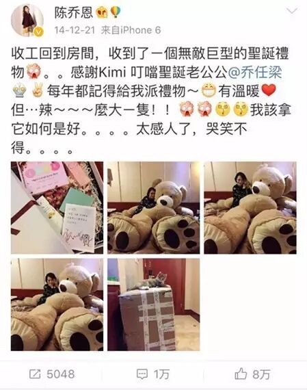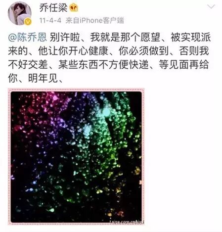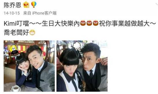 陈乔恩过生日,乔任梁必会送上礼物和祝福