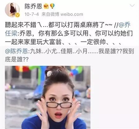 两人在2010年时微博就有各种互动,乔任梁调侃陈乔恩演的角色,都可以凑一桌玩大富翁了。