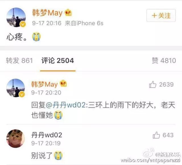 昨晚陈乔恩的经纪人发了条微博,只有简单的两个字“心疼”。回复工作人员的评论也暗示陈乔恩早已泪如雨下……