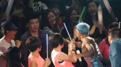 紧接着就是那次在郭富城演唱会上著名的世纪握手,台下熊黛林为郭富城鼓掌喝彩。而郭富城则隔空示爱,并跳到台下和黛林握手,深情对望……