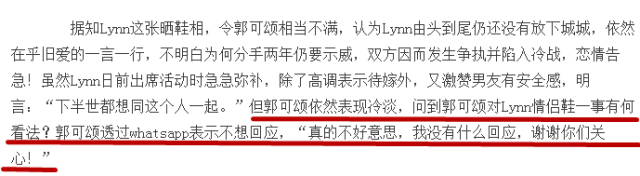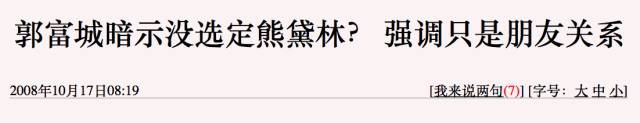 无论拍到多么亲密的照片,两人的行为有多么亲密,郭富城就是没有承认过这段恋情,也始终没有地明确给过熊黛林期望的承诺。