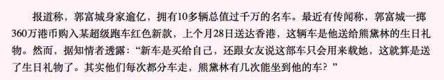 甚至连郭富城为熊黛林送车一事都要大肆渲染,认为人家占了多大的便宜。