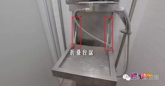 沐浴处也安了一个折叠台盆,这样可以同时洗漱的人数又增加了,早上洗脸再也不需要排队。
