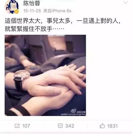 后来许玮伦说三人世界太挤选择退出,李威和陈怡蓉的绯闻却越传越烈。但是陈怡蓉,你还记得自己说过自己有感情洁癖不允许对方有一丝不忠心吗……