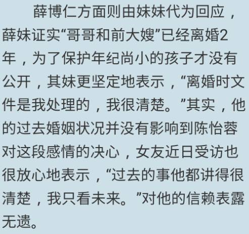不过好在薛博仁的妹妹出来澄清说,离婚文件早就处理好了只是没有公开,陈怡蓉不是第三者。