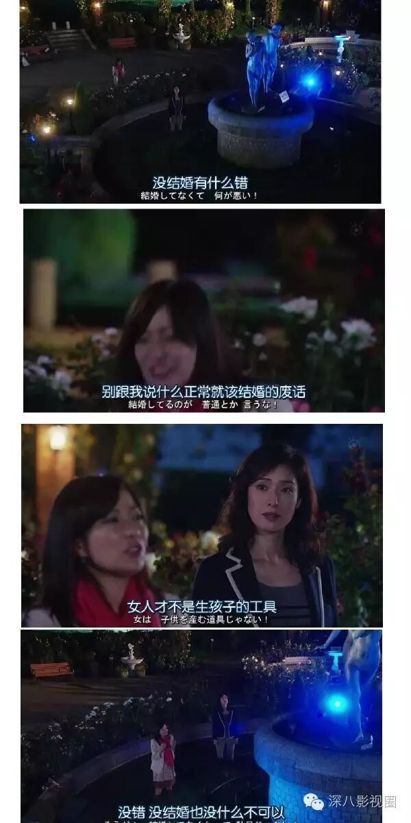 这部剧里,有的女性角色想结婚而不成的“剩女”,逐渐醒悟到没结婚有什么错,女性并不是生孩子的工具,没结婚也没什么不可以。