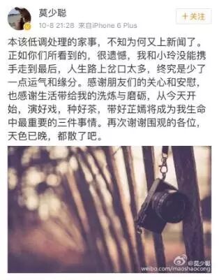 十多年来,在大多数吃瓜群众眼里莫少聪就是渣男一枚。一边是洪欣张丹峰的甜蜜恩爱,一边是吸毒离婚的前任莫少聪。诸如“天道好轮回,苍天绕过谁”这样的帖子越来越多。这也许是莫少聪认为自己被泼脏水的原因之一。