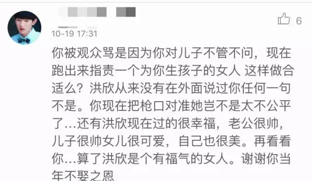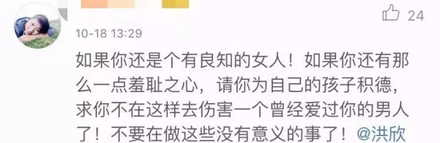 还有网友劝洪欣“不要再伤害一个曾经爱过你的男人了”,“请为自己的孩子积德”