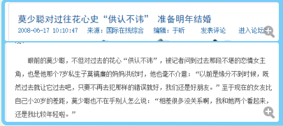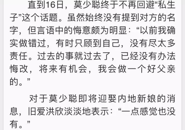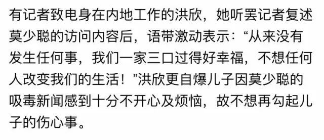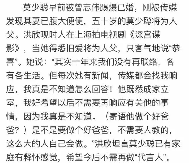 五年前莫少聪奉子成婚时,洪欣就表示希望以后不再做莫的“代言人”,希望记者不要总拿莫的动态来询问她的看法。如今看来,似乎很难呢...