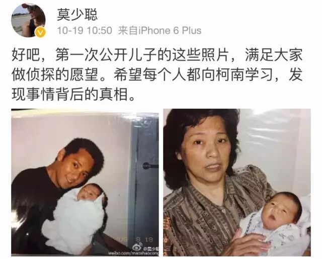 种种传闻,真假难辨。今天上午莫少聪还公开了两张照片,分别是他和母亲抱着年幼的儿子,来证明他对儿子并非不管不顾