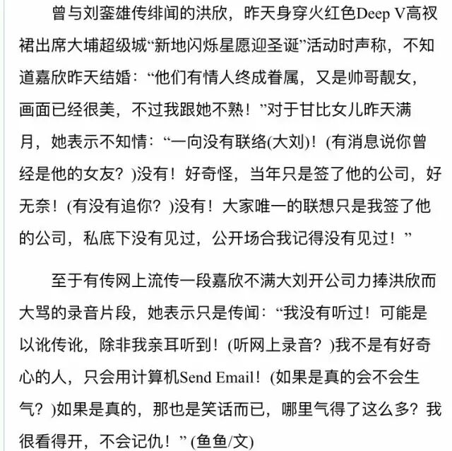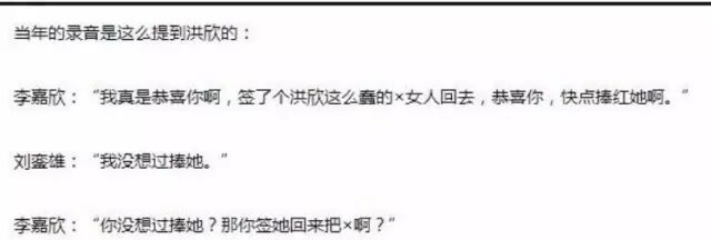 后又传出被刘銮雄包养,有港媒甚至公开了一段疑似李嘉欣因与洪欣争宠而对大刘粗口大骂的录音
