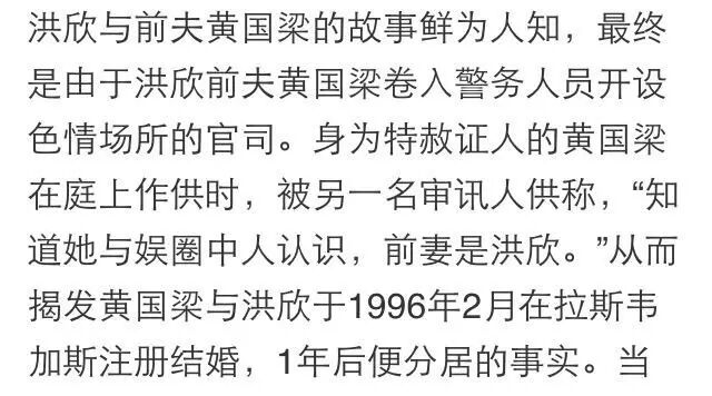 但也有传闻说洪欣本就情史复杂,出道以来绯闻不断,曾被指是“赖昌星情妇”
