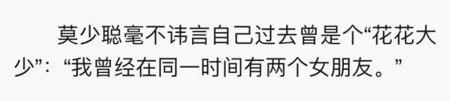 正所谓事业失意情场得意,莫少聪眼大迷人身材好,还能说会道,女性缘很不错,连朋友都说他是“女人杀手”。
