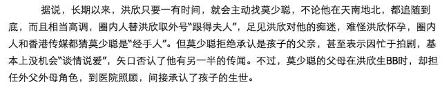港媒曾经拍到洪欣抱孩子出门,即便莫少聪不认,酷似莫的一双大眼也让港媒认定其生父身份。