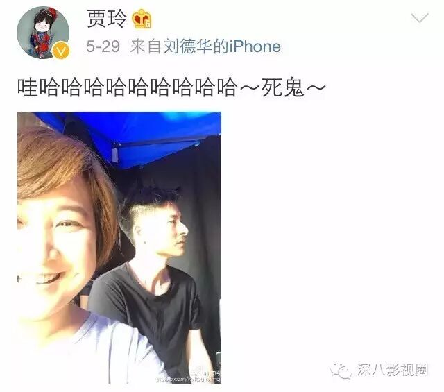 虽然一大帮子人一起战斗,但贾玲晒出照片中只有跟他是两人头碰头的合影。