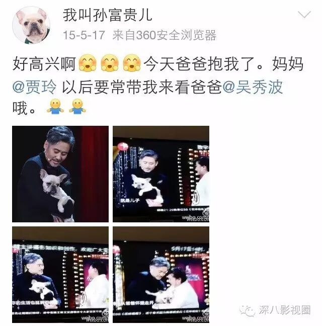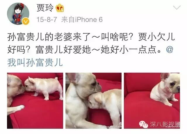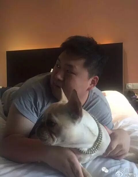 孙集斌抱的这只狗经常出现在贾玲的微博中,名叫孙富贵儿。