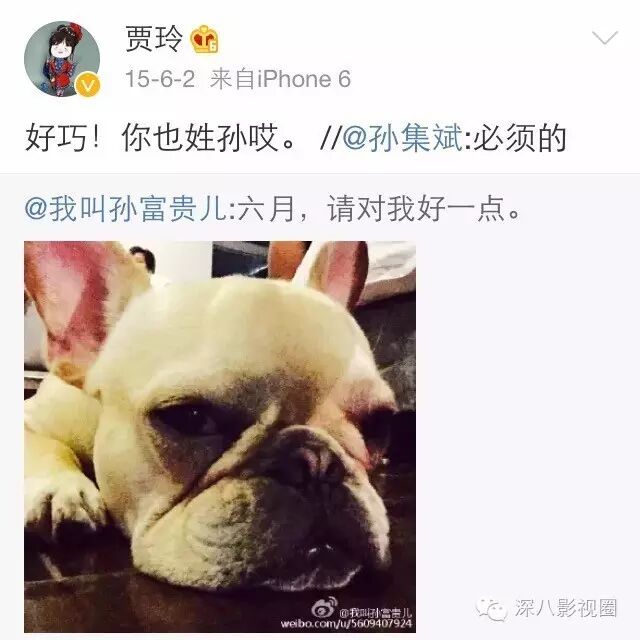 贾玲回复网友说狗狗其实姓贾,全名贾孙富贵儿