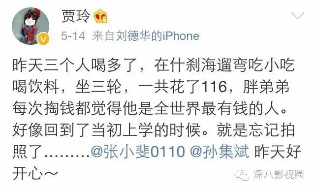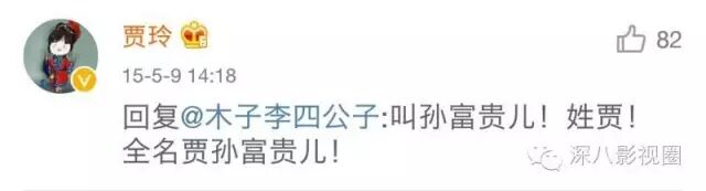 孙富贵儿的微博应该就是贾玲打理的吧?去年某天孙富贵儿微博上突然喊话:对我好一点,孙集斌立刻接话:必须的。而贾玲转发的这句,能不让人浮想联翩吗:“好巧,你也姓孙哎”。
