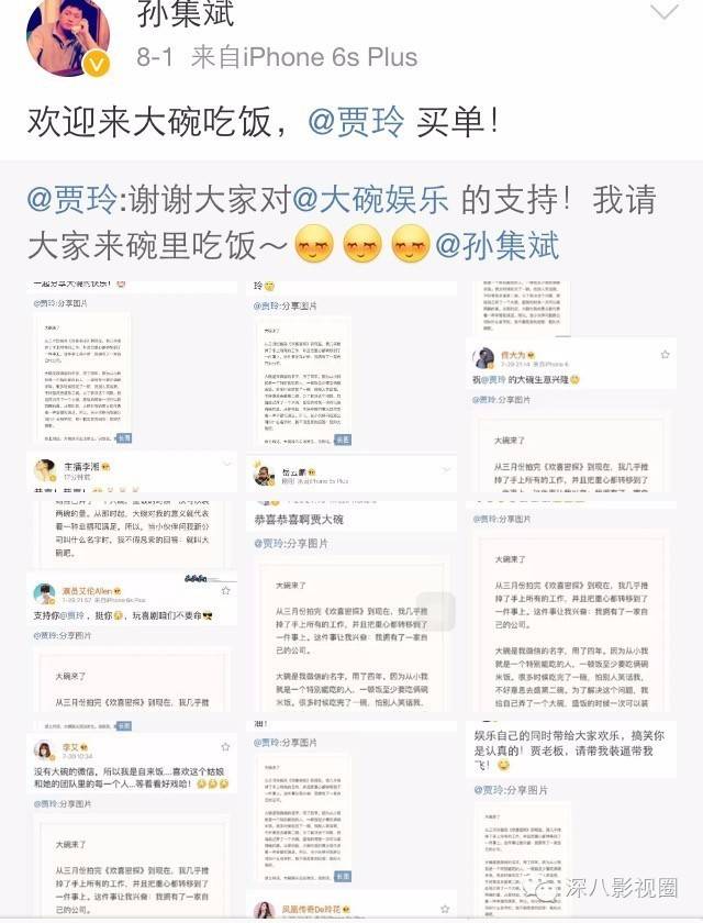 今年8月,贾玲公布成立自己的娱乐公司。感谢明星纷纷转发支持的微博中,她艾特了孙集斌。