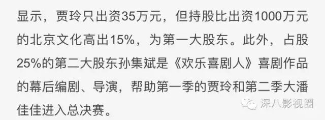 贾玲的娱乐公司中她是第一大股东,孙集斌是第二大股东。