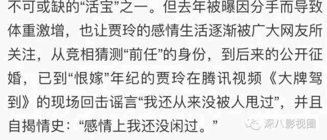 到了这时候,贾玲终于不得不出面澄清。所谓的朋友圈截图纯属伪造,她不会声讨渣男,因为她在恋爱中“还从来没有被人甩过”,而且她在感情上也没闲过。