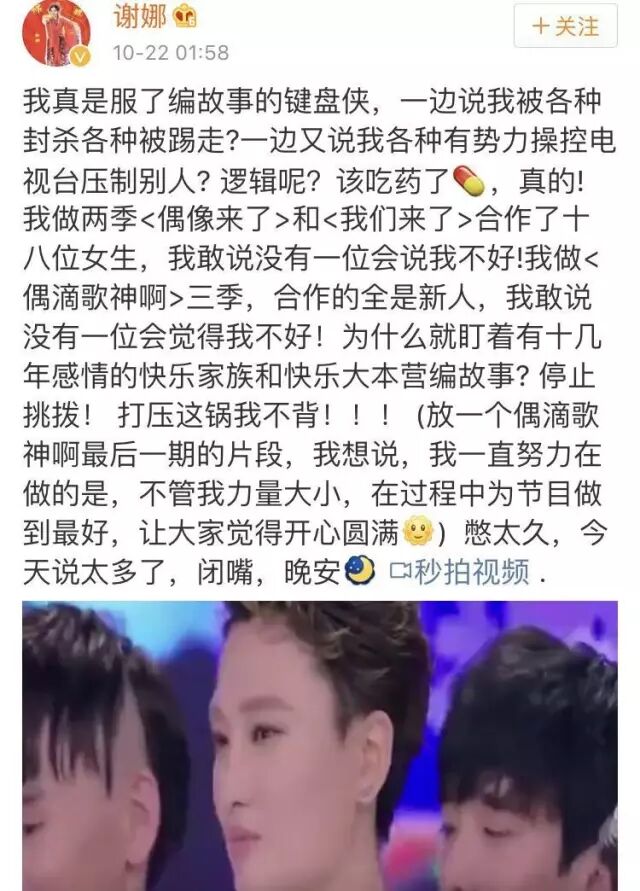 呃,谢娜这边,骂得不解气凌晨又再来了一条?抬头看了眼日历,周六了哇,快本又该播出了~