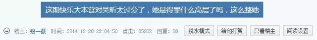 连看到《快本》玩游戏的网友都在猜测吴昕是不是得罪什么高层了,有人回帖直接质疑得罪的是不是谢娜?