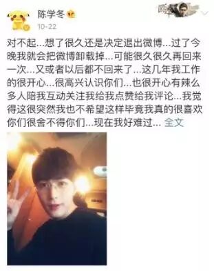 如果不能堵住悠悠之口,明星当然首先应该反思自己的业务水平,可如果是无脑的人身攻击,除了正面怼人,也可以用自我调侃来消解恶意啊,本以为陈学冬真的要退出微博了,
