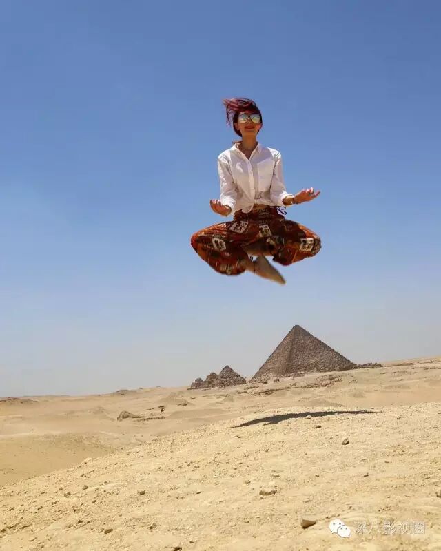 在金字塔旁腾空