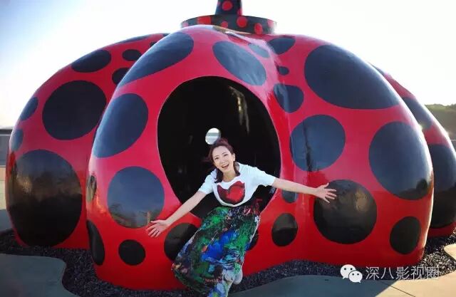 在草间弥生的南瓜旁展开一个大大的拥抱