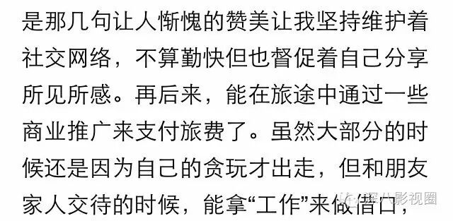 8月她在公号上的一篇文章中写道:开始只是在社交网络中分享所见所感,后来能在旅途中通过一些商业推广来支付旅费了。