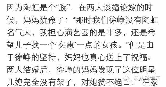 徐峥妈妈因为儿子没有陶虹名气大,还曾表示希望儿子找个“实惠”一点的女孩。