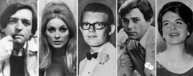 当晚陪着莎朗的是她的化妆师,以及一对明星夫妻朋友。图片中间那个男孩跟莎朗素不相识,只是那晚正好路过来找看门人说了几分钟话,出门时不巧撞上邪教教徒,就此送命。